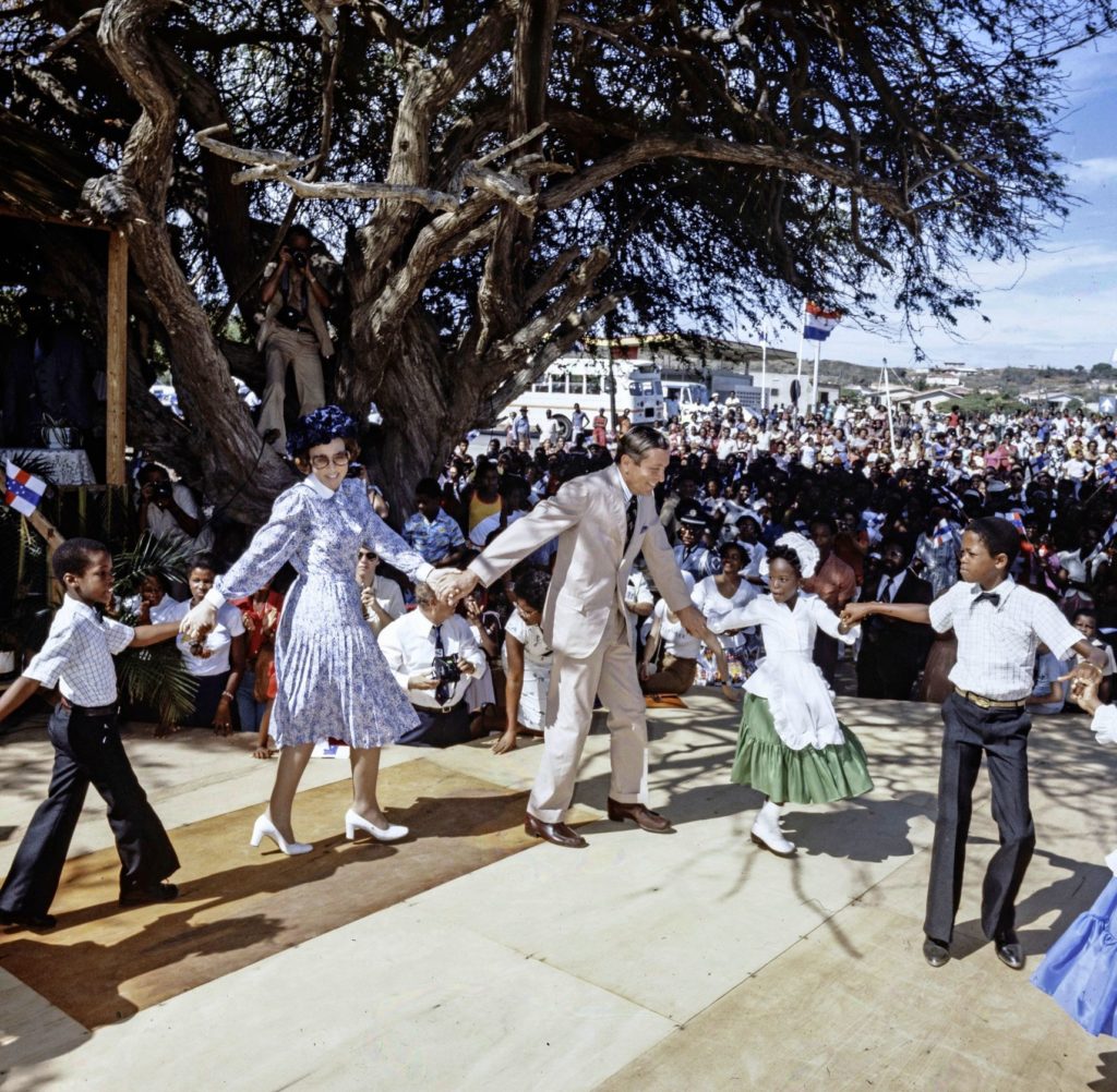 Als vers ingehuldigde koningin bezoekt Beatrix met prins Claus de eilanden van het Nederlands koninkrijk.