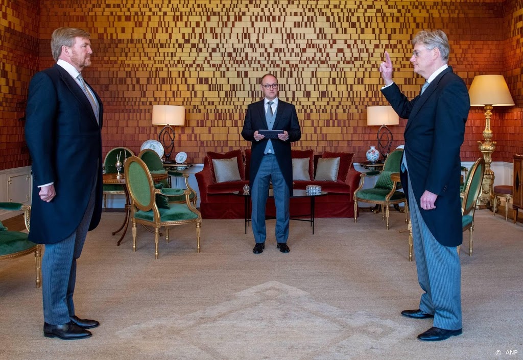 Koning Willem-Alexander heeft maandag Martin van Rijn beëdigd als nieuwe minister voor Medische Zorg. Dat gebeurde op Paleis Huis ten Bosch in een bijzonder vertrek, de tot ‘DNA-kamer’ omgedoopte Groene Salon. De wandversiering bestaat uit 60.000 baksteentjes die het DNA van het koningspaar en prinses Amalia vormen.