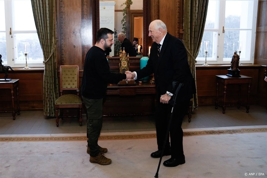 Koning Harald van Noorwegen heeft de Oekraïense president Volodymyr Zelensky woensdag ontvangen op het koninklijk paleis in Oslo, de hoofdstad van Noorwegen. Ook koningin Sonja, kroonprins Haakon en kroonprinses Mette-Marit waren bij de ontmoeting.