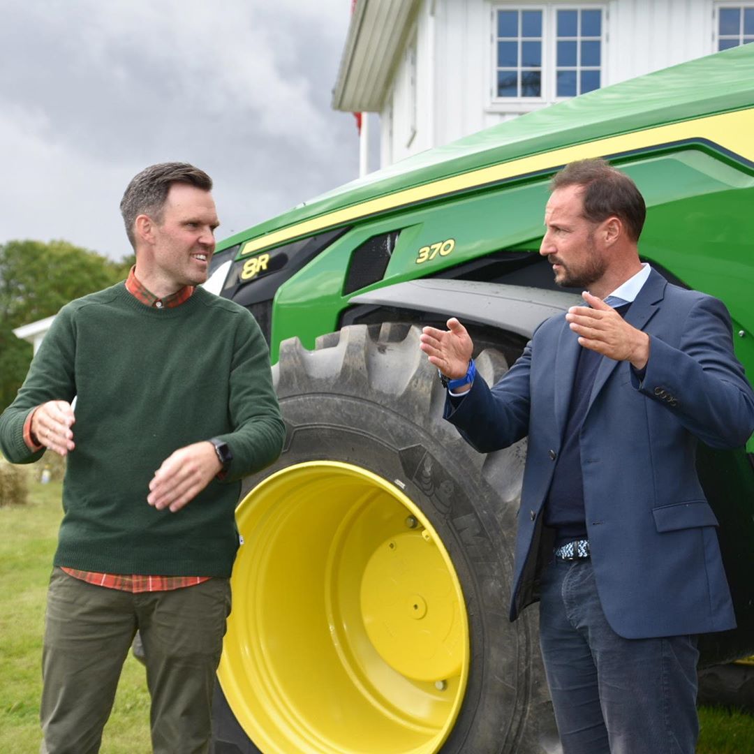 Daarna bezocht Haakon ook nog een boerderij in Vølen. Ane Hjertland Holt en Edvard Freberg verbouwen asperges en maken daarbij gebruik van de modernste technieken. Zo zetten ze gps-trackers in om het rijden met een tractor gemakkelijker te maken voor de bestuurder.