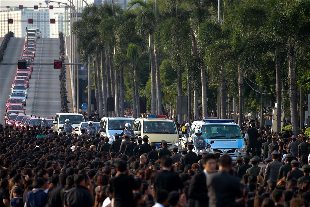 Het lichaam van koning Bhumibol is vrijdag overgebracht naar het Koninklijk Paleis in Bangkok. De 88-jarige vorst overleed donderdag in het Siriraj-ziekenhuis.