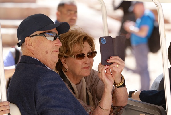 2020-03-04 02:34:45 King Harald V of Norway (L) and his wife Queen Sonja of Norway, visit Jordan's archaeological city of Petra, south of the capital Amman on March 4, 2020. Khalil MAZRAAWI / AFP