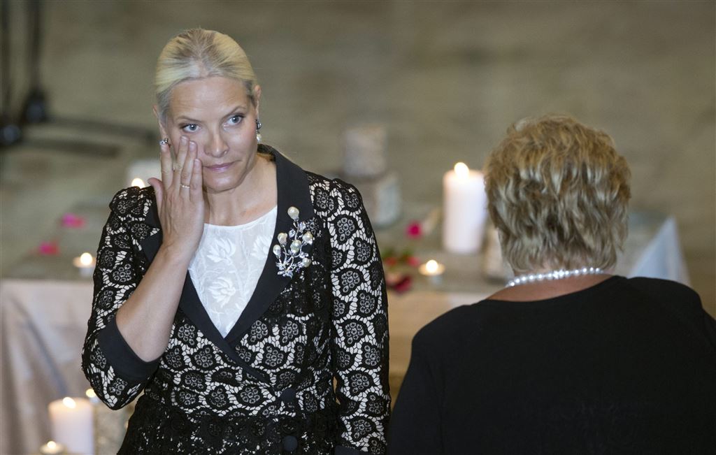 Bij de herdenking kon de kroonprinses haar tranen niet bedwingen. Zij verloor haar stiefbroer die vrijwillig als beveiliger werkte op het jeugdkamp. Anders Breivik zit nu een celstraf van 21 jaar uit.