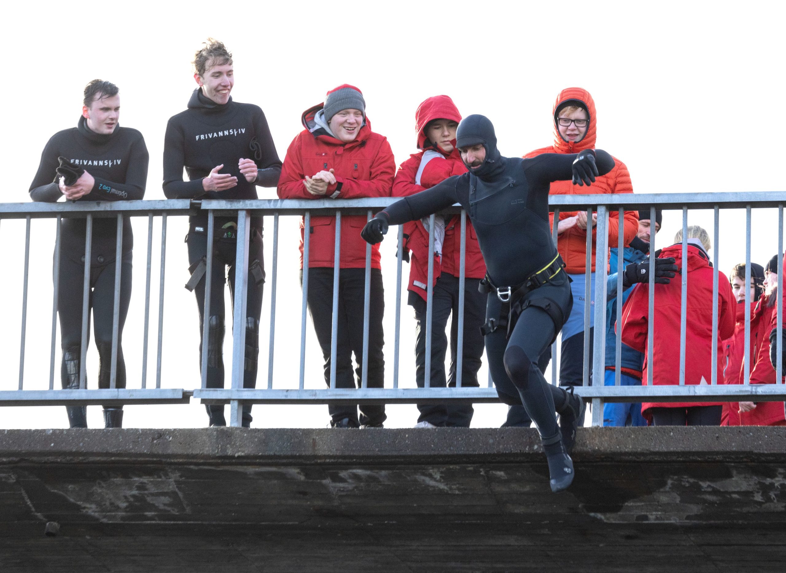 “Ik voelde een zekere druk vandaag”, zei Haakon na afloop tegen TV2. Hij had naar eigen zeggen een behoorlijk hoge hartslag voordat hij de sprong maakte. De kroonprins had een wetsuit aangetrokken om geen kou te vatten. Het water was naar schatting zo’n 2 graden. Het was daarna nog niet gedaan voor Haakon, want hij moest ook nog via een touwladder terug naar boven.