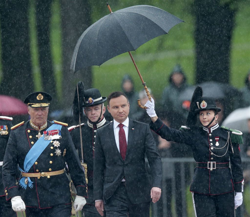 Met koning Harald inspecteerde het Poolse staatshoofd de erewacht, en de koning vergezelde Duda ook naar de vesting Akershus voor een kranslegging bij het nationale monument voor de slachtoffers van de Tweede Wereldoorlog. Bij de slag om het Noord-Noorse Narvik in de meidagen van 1940 kwamen 97 Poolse soldaten om. Het presidentspaar staat daar later in het bezoek nog uitgebreid bij stil.