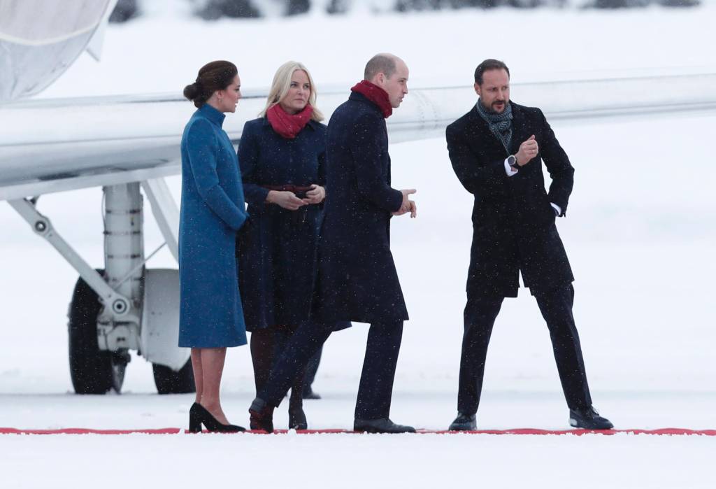 Kroonprins Haakon van Noorwegen en zijn vrouw kroonprinses Mette-Marit hebben prins William en zijn vrouw Kate donderdag welkom geheten in een besneeuwd Oslo.