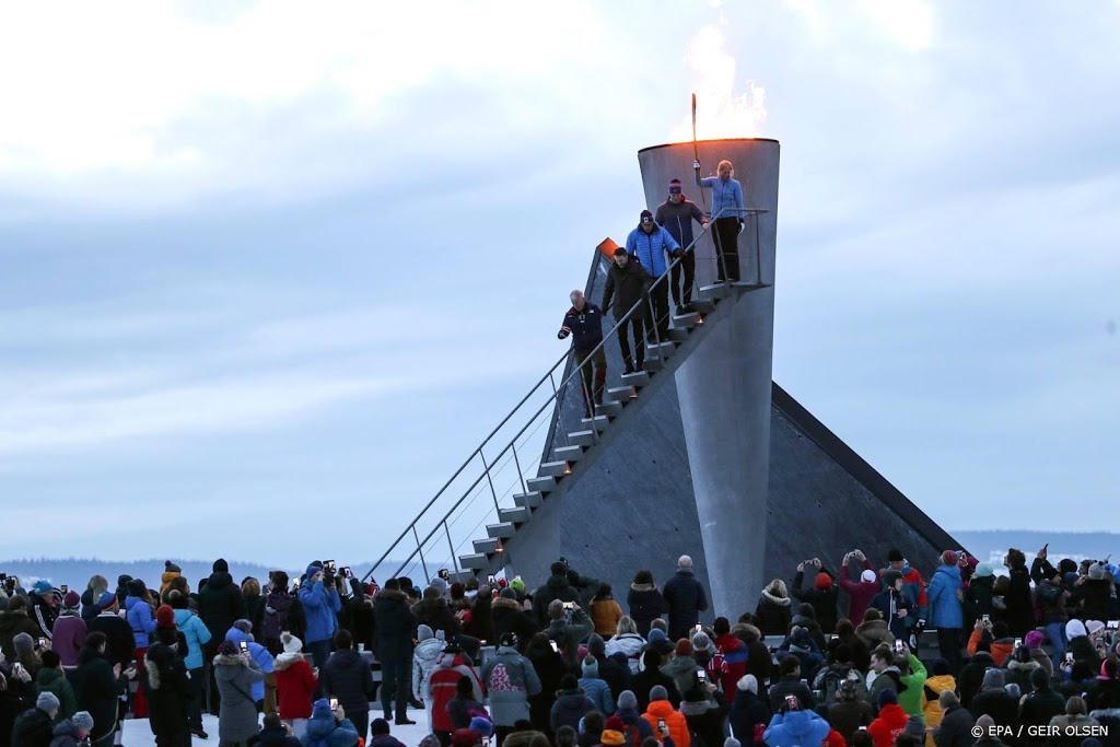Het Noorse koningspaar heeft zaterdagmiddag het ontsteken van de olympische vlam in Lillehammer bijgewoond. Daarmee werd gevierd dat het 25 jaar geleden is dat de Olympische Spelen in Noorwegen werden gehouden.