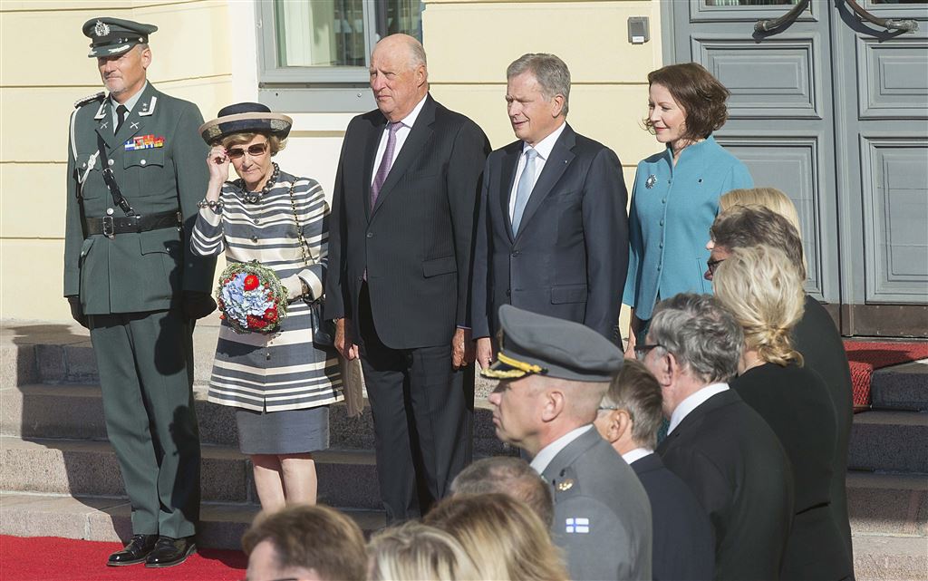 De Noorse koning Harald en zijn vrouw Sonja zijn warm welkom geheten in Finland. In een speech bedankte Sonja voor de warmte waarmee het koningspaar dinsdag werd ontvangen.