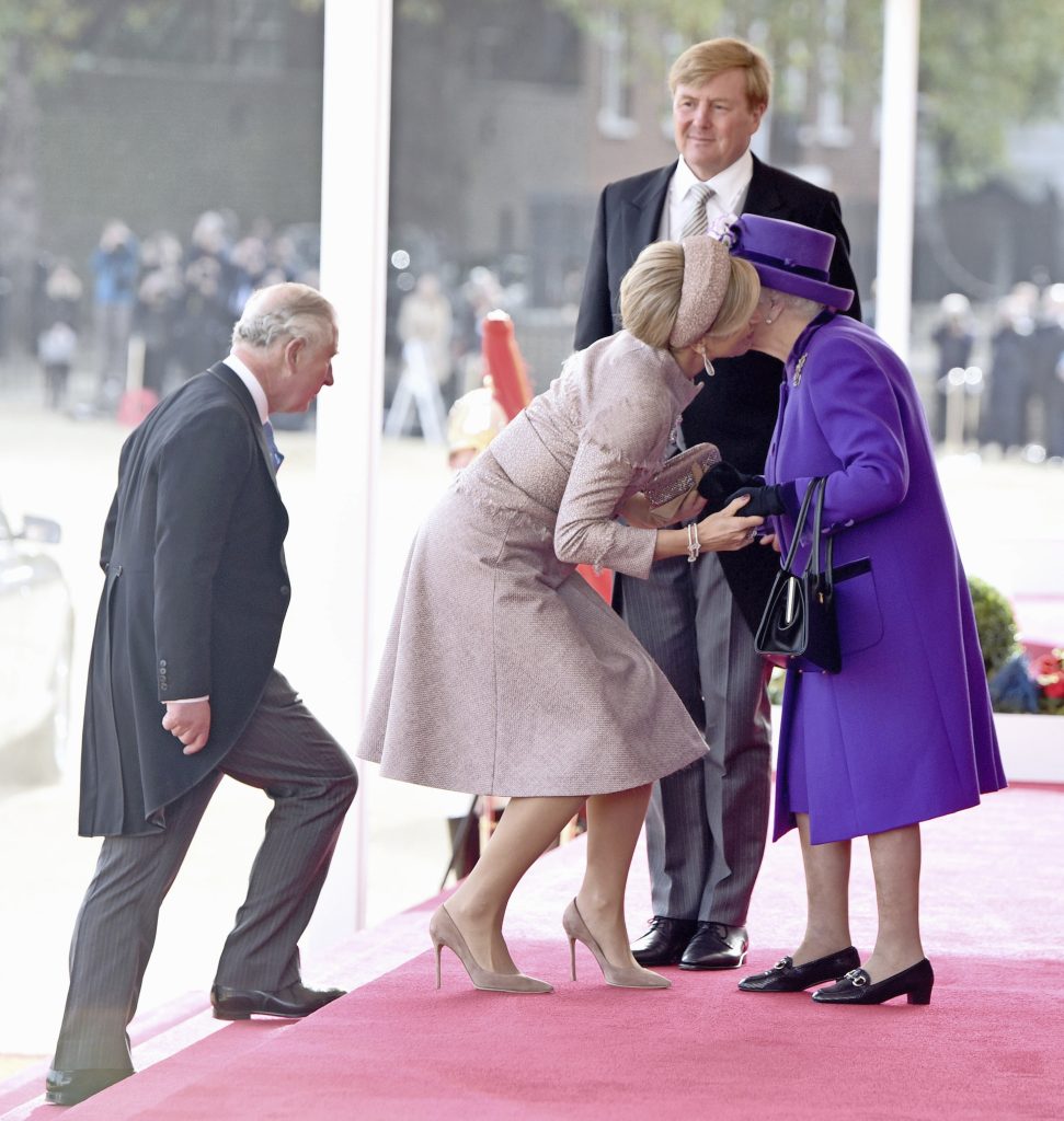 Of Máxima een reverence maakte voor koningin Elizabeth tijdens het staatsbezoek in 2018? Sommigen denken van wel, maar Van Ditzhuyzen betwijfelt het. ‘Omdat Elizabeth een regerend vorst was en Máxima een aangetrouwde koningin, zou je een verschil in rang kunnen zien. Maar ik denk dat Máxima gewoon door haar knieën ging vanwege het lengteverschil. Dan ziet een kniksje er charmanter uit dan vooroverbuigen.’ Maar alles is mogelijk, zo ziet ook Van Ditzhuyzen. ‘Het blijft immers een teken van eerbied. Dat heeft hier niet misstaan.’
