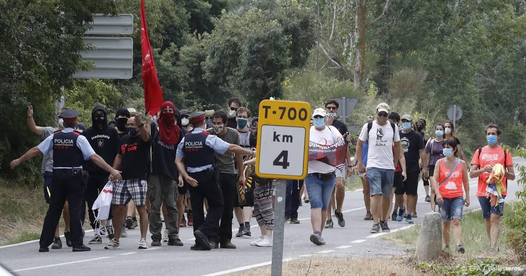 Een aantal van hen wist de politie te omzeilen en het Poblet-klooster in Tarragona te bereiken, waar het koningspaar op bezoek was. Bij het klooster kwam het bijna tot een confrontatie met aanhangers van het koningshuis. De Catalaanse politie, de Mossos d’Esquadra, moest ingrijpen. Daarbij werd zeker één arrestatie verricht.