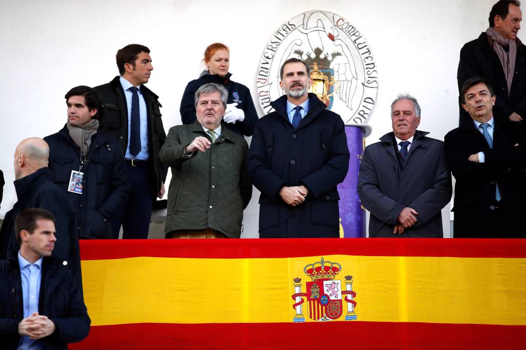 MADRID – Koning Felipe heeft zondag de rugbywedstrijd tussen Spanje en Duitsland bezocht. De Spaanse vorst had daarmee een feestelijke dag, aangezien de Spanjaarden met 84-10 veel te sterk waren voor de Noord-Europese opponent.