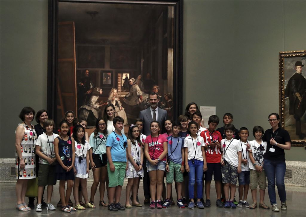 Het Spaanse koningspaar Felipe en Letizia bezochten maandag het Prado in Madrid. Ze maakten kennis met het onderwijsprogramma dat het wereldberoemde kunstmuseum opzette voor kinderen.