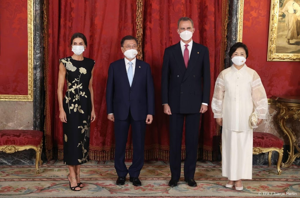 Het Spaanse koningspaar heeft voor het eerst sinds de coronapandemie vorig jaar uitbrak weer een officieel staatsbezoek ontvangen. President Moon Jae-in en zijn vrouw Kim Jung-sook uit Zuid-Korea gingen dinsdag bij Felipe en Letizia op visite.