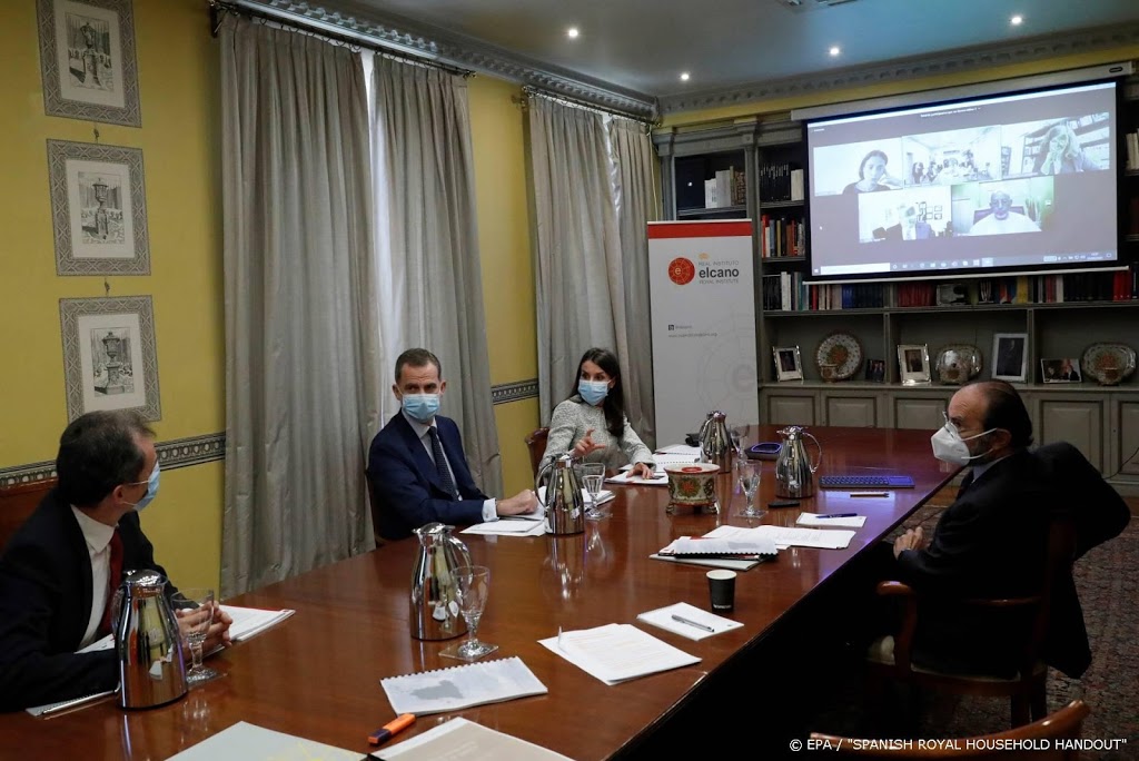 Koning Felipe en koningin Letizia van Spanje hebben maandag een sessie bijgewoond het Elcano Royal Institute, een Spaanse denktank. Tijdens de bijeenkomst stond de wereldwijde impact van het coronavirus centraal.