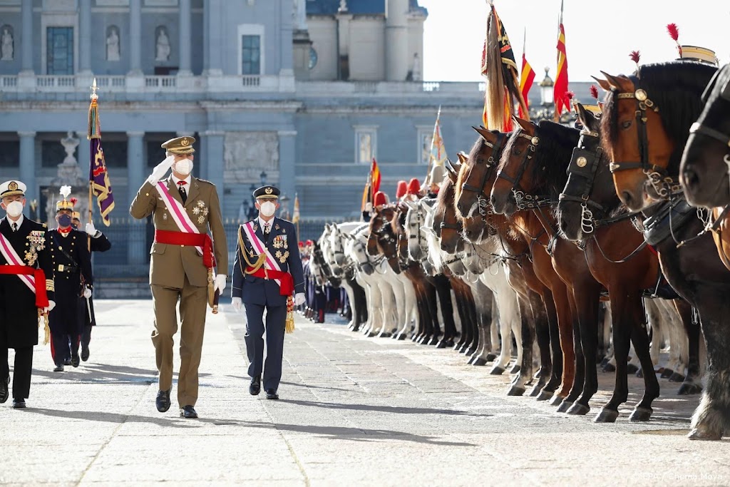 Samen met zijn vrouw koningin Letizia nam Felipe donderdag deel aan de militaire nieuwjaarsparade bij het Koninklijk Paleis in Madrid. In de Troonzaal sprak de koning de aanwezigen toe over de militaire missies van het afgelopen jaar en decoreerde hij zestien militairen voor bewezen diensten.