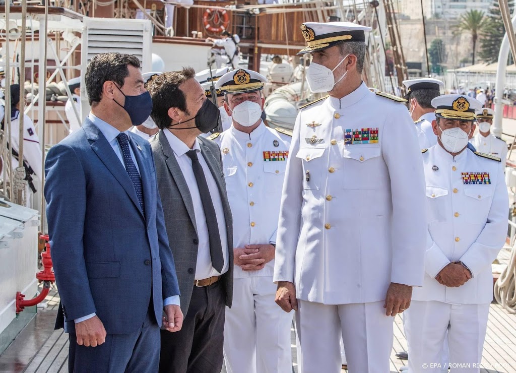 Felipe in Cádiz bij terugkeer marineschip na reis om de wereld