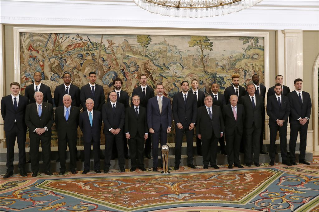 Felipe ontving in het Zarzuela Paleis niet alleen de spelers van Real Madrid. Ook de coaches, managers, technische staf en artsen van het team kwamen langs. Real Madrid won dit jaar voor de 27e keer de Copa del Rey de Baloncesto, het is de vierde opeenvolgende titel voor het team.