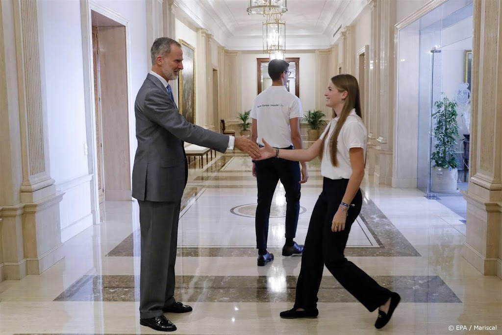 Het is al de tweede keer in een week dat Felipe een grote groep jongeren over de vloer krijgt. Vrijdag kwamen er studenten van het United World College langs die hun opleiding net hebben afgerond en een groepje dat komend schooljaar gaat beginnen. Daaronder vallen ook zijn dochters Leonor en Sofía, en die waren daarom ook aanwezig.