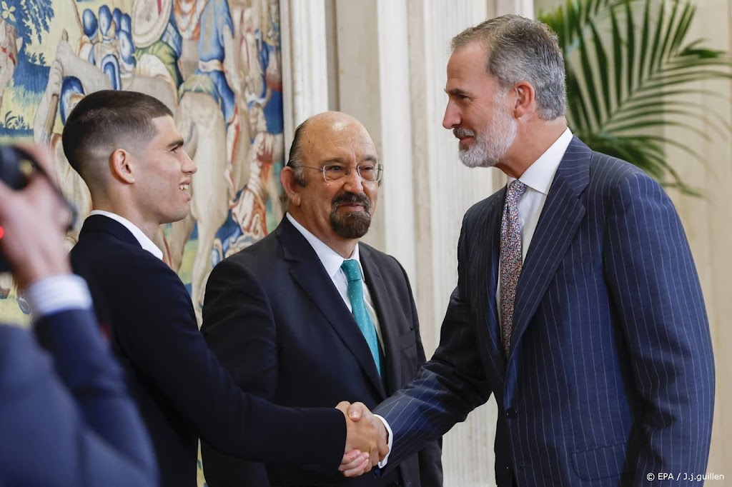 De Spaanse koning Felipe stond woensdag oog in oog met maar liefst drie Spaanse tenniskampioenen. Op het Zarzuela-paleis ontving de vorst onder anderen Carlos Alcaraz, die eerder deze maand de US Open won.