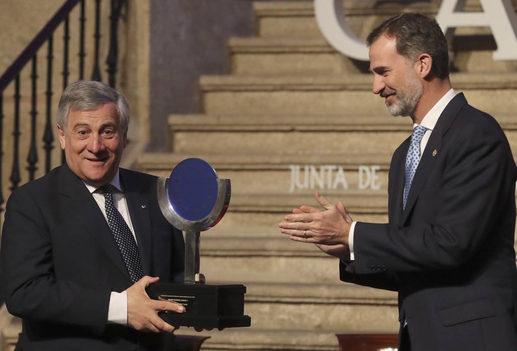 Felipe reikt prijs uit aan EU-voorman Tajani