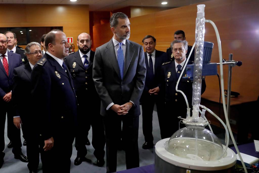 Koning Felipe van Spanje heeft maandag een bezoek gebracht aan het hoofdkantoor van de drugsbestrijdingsdienst van de Spaanse politie. Aanleiding voor de visite is het vijftigjarig bestaan van de organisatie.