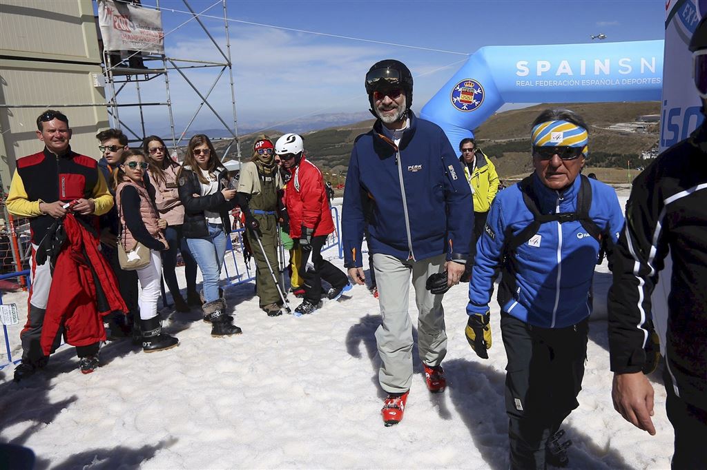Koning Felipe van Spanje heeft zijn vrije zaterdag benut om weer op de tribune plaats te nemen van de wereldkampioenschappen snowboarden en freestyleskiën in Sierra Nevada.