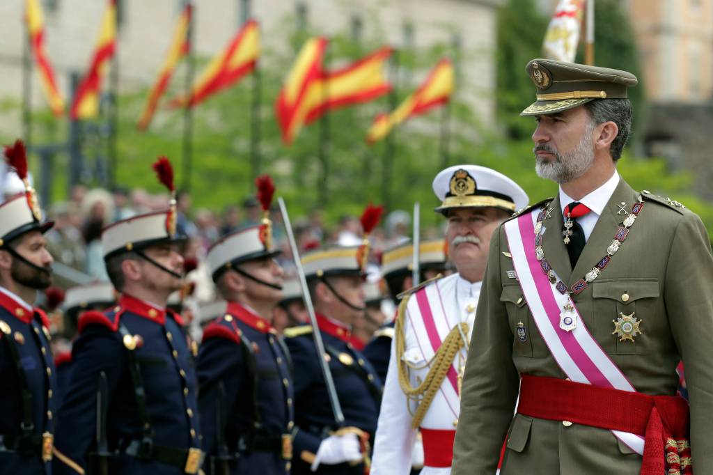 Het Escorial in de Spaanse gemeente San Lorenzo de El Escorial is een kasteel, een abdij en een koninklijk mausoleum in één en ligt ten noorden van Madrid. Na aankomst inspecteerde de Spaanse vorst de erewacht, alvorens hij de militaire onderscheidingen uitreikte. Als opperbevelhebber van het leger draagt Felipe het grootkruis van de orde, een traditie die hij heeft overgenomen van zijn vader Juan Carlos.