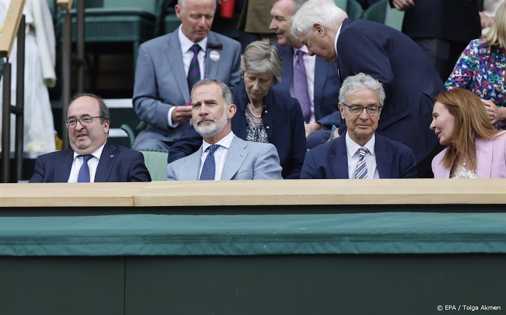 De Spaanse vorst is aanwezig om zijn landgenoot Carlos Alcaraz aan te moedigen. Felipe ontmoette de jonge Spaanse tennisser al eerder, nadat hij vorig jaar de US Open had gewonnen.