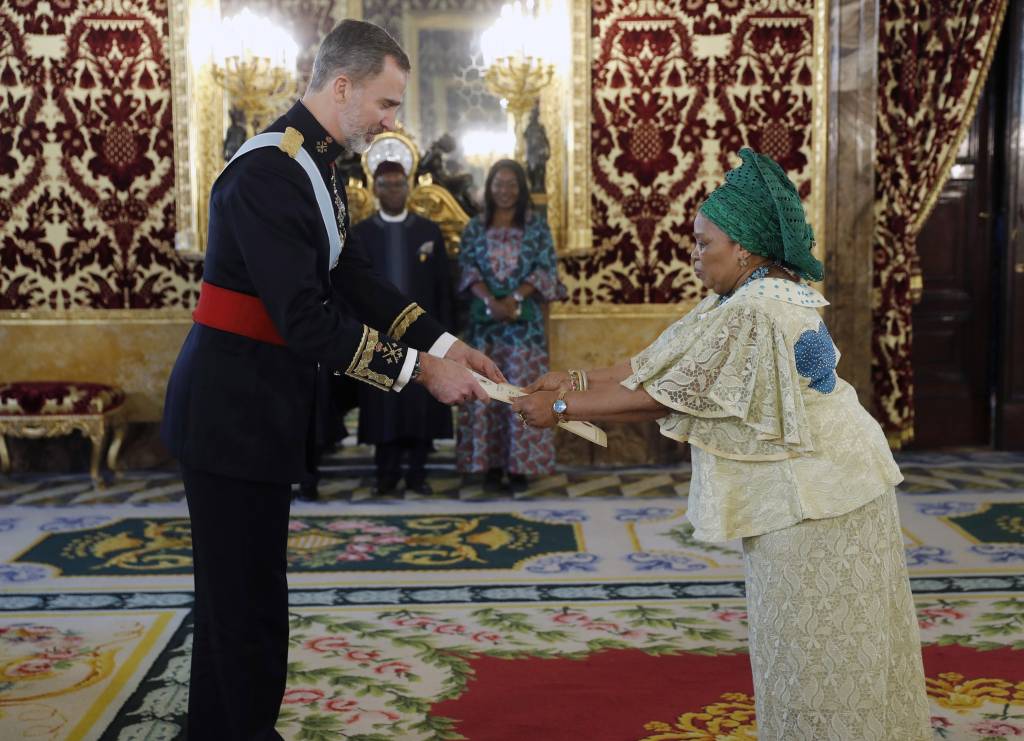 De volgende gast kon Felipe weer in zijn eigen taal verwelkomen, toen de nieuwe Chileense ambassadeur Jorge Tagle Canelo zijn opwachting maakte. Deze werd afgelost door Susan Aderonke Folarin, die haar thuisland Nigeria vertegenwoordigt in Spanje. Aansluitend kwam ambassadeur Hala Keyrouz namens Libanon de geloofsbrieven overhandigen en ten slotte nam de koning de papieren in ontvangst van Richard Duke Buchan III, ambassadeur van de Verenigde Staten.