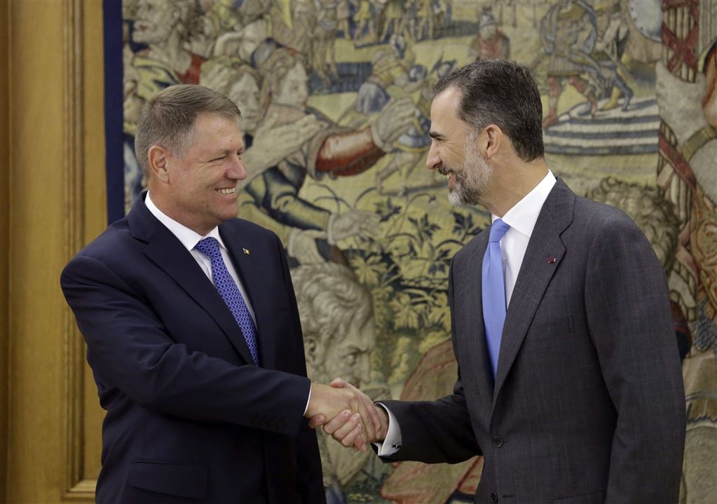 MADRID – Koning Felipe van Spanje heeft maandag president Klaus Iohannis van Roemenië in audiëntie ontvangen. Felipe ontving de Roemeense president op het Zarzuela Paleis. Daar stond ook een lunch klaar voor de president en zijn vrouw Carmen Iohannis met het Spaanse koningspaar.