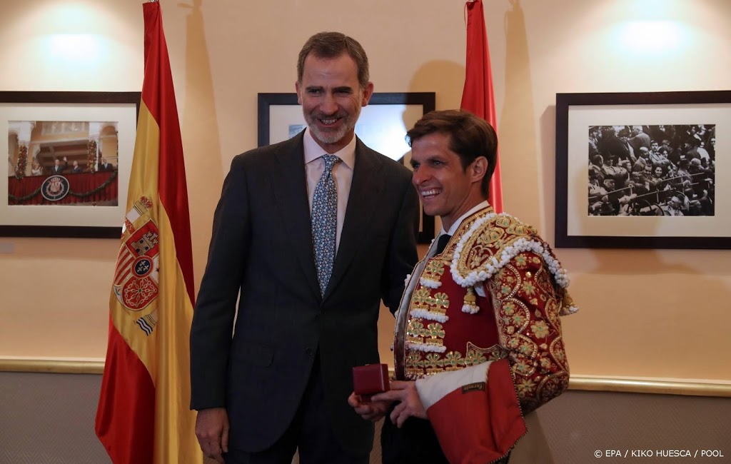 De Spaanse koning Felipe was woensdagavond in Madrid aanwezig bij de benefietavond van het stierenvechtfestival de Feria de San Isidro. Hij keek vanuit de koninklijke loge van de Plaza de Toros de las Ventas naar de verrichtingen van de bekende stierenvechters Julian Lopez ‘El Juli’ en Diego Urdiales.