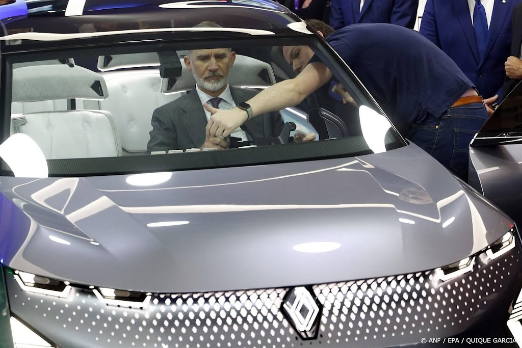 De koning sprak uitgebreid met enkele exposanten en kreeg uitleg over nieuwe technologieën. Felipe werd ook in een auto bijgepraat over de technologische ontwikkelingen.