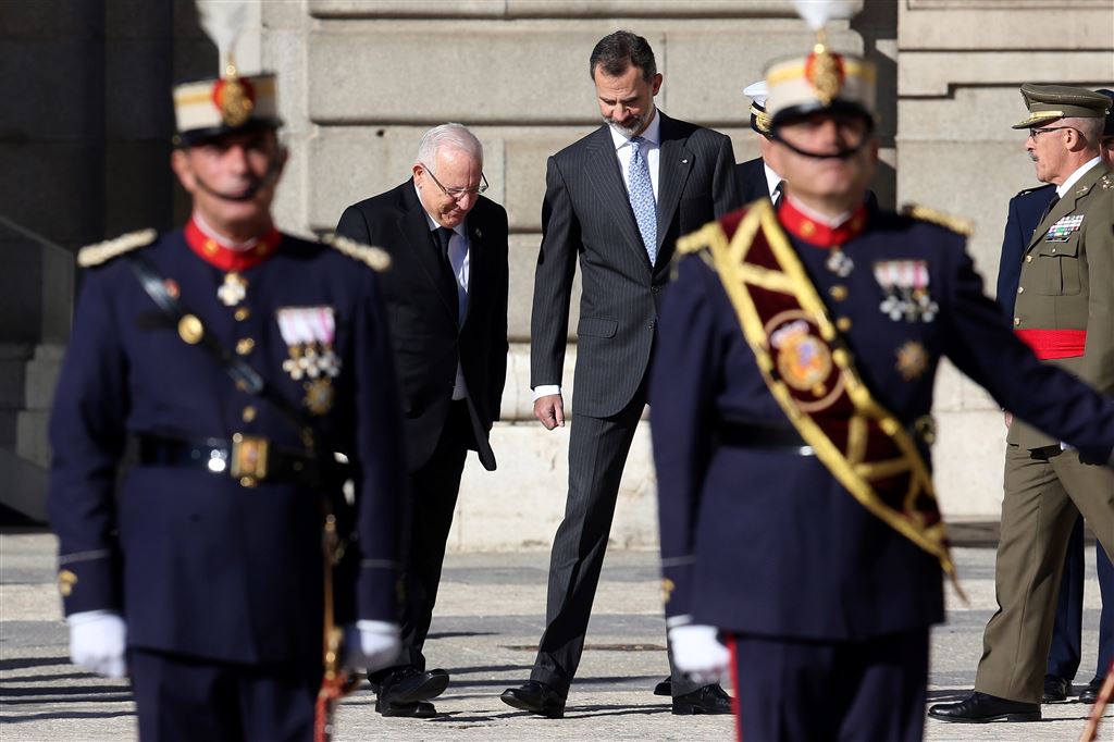Felipe en koningin Letizia zagen samen met het echtpaar Rivlin hoe voor het paleis 21 kanonschoten werden afgevuurd ter ere van het bezoek. Nadat de vorst en president Rivlin een bataljon van de Spaanse Koninklijke Garde hadden geïnspecteerd, volgde een parade van leden van het legeronderdeel.