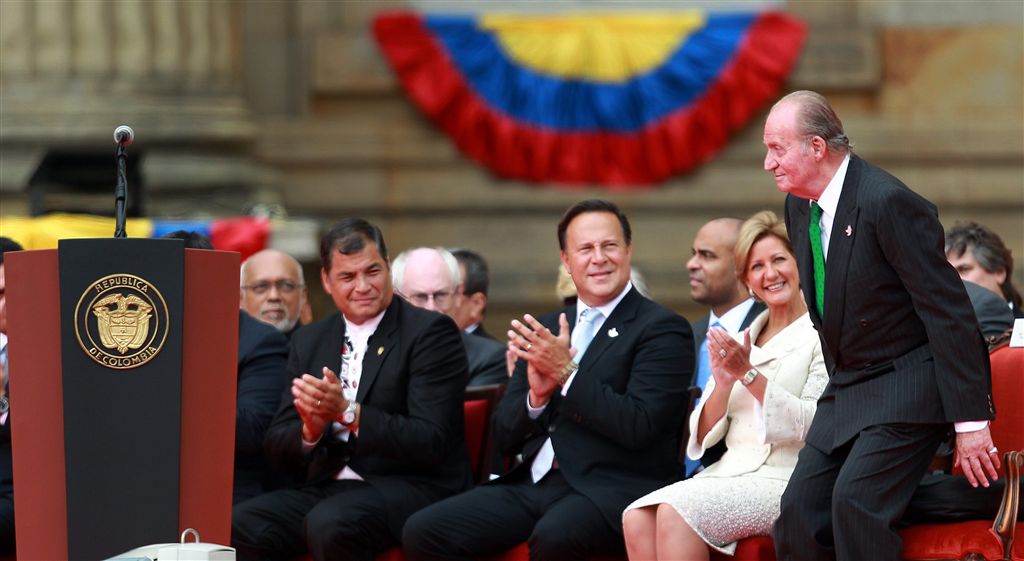 BOGOTA – Koning Juan Carlos heeft in de Colombiaanse hoofdstad Bogotá de eedaflegging bijgewoond van de herkozen president Juan Manuel Santos. Tijdens de ceremonie kreeg de Spaanse koning, die na zijn aftreden zijn titel behield, applaus van de aanwezigen.