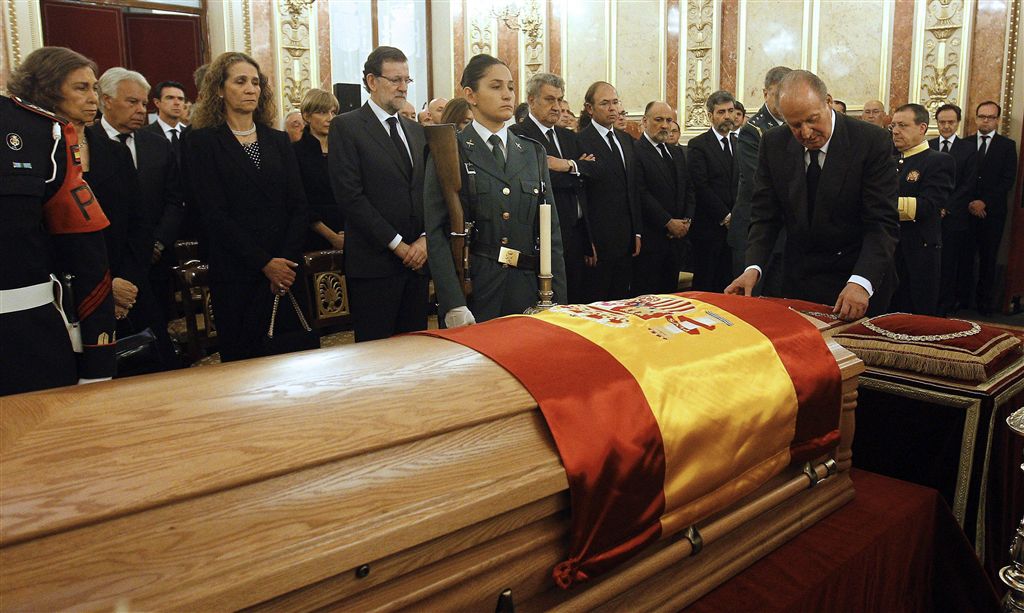 Zondag op de dag van het overlijden van Suárez had de Spaanse koning hem al geprezen als een groot staatsman die ‘de belangen van de Spaanse maatschappij stelde boven zijn eigen belang en dat van zijn politieke partij’.