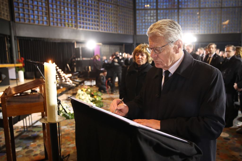 Gauk woonde dinsdagavond een herdenkingsdienst bij in de Gedächtniskirche in Berlijn voor de slachtoffers van de aanslag. De kerk staat naast de kerstmarkt waar maandag twaalf mensen omkwamen doordat een terrorist met een vrachtwagen het publiek inreed.