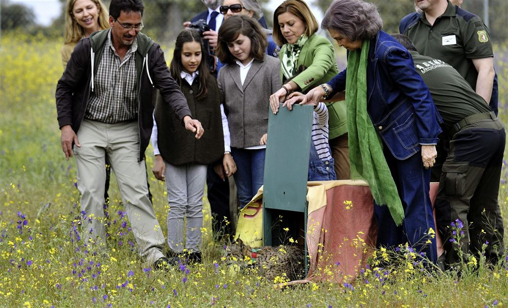 TOLEDO – Koningin Sofia van Spanje en haar zus prinses Irene hebben vrijdag twee lynxen vrijgelaten in een natuurgebied bij Toledo. De lynxen, twee vrouwtjes genaamd Lava en Lila, zijn begin vorig jaar geboren in fokcentra in Portugal en Zuid-Spanje. De zeldzame katachtige dieren zijn toegevoegd aan twintig soortgenoten die sinds vorig jaar in het natuurgebied zijn uitgezet.