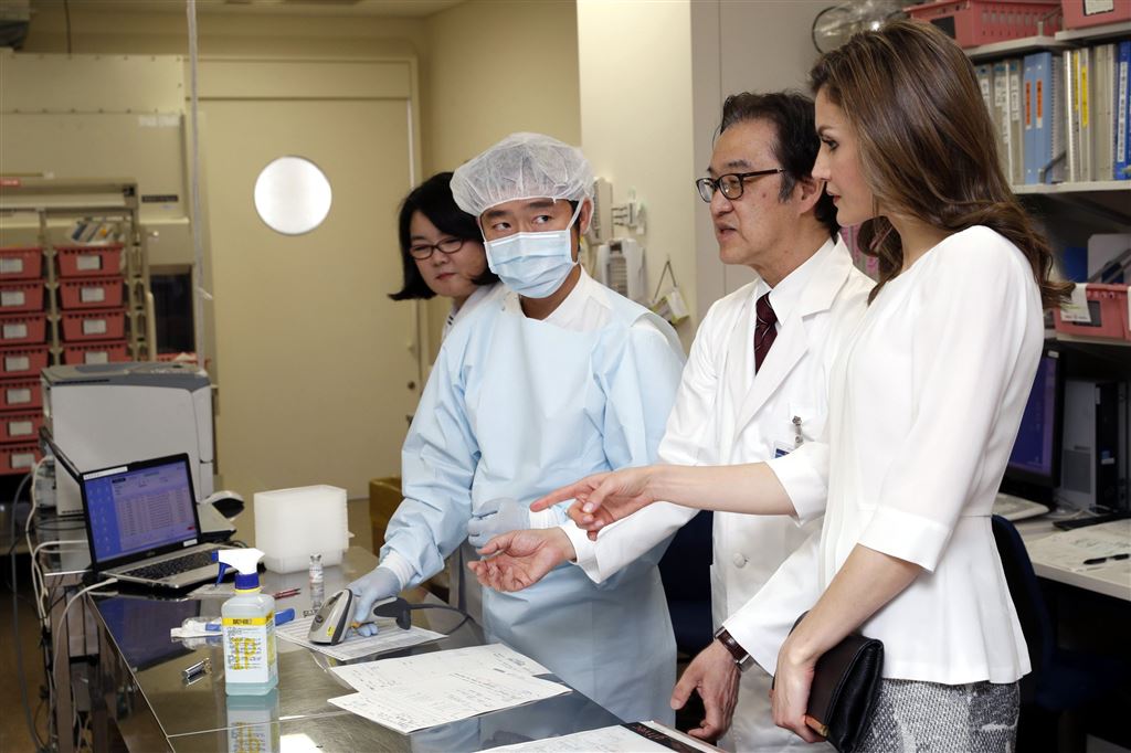 Terwijl haar echtgenoot een vorkje prikte met zakenlui, leerde Letizia meer over de behandeling van kanker. De koningin kreeg een rondleiding door het ziekenhuis van de Keio University, waar immuuntherapie als kankerbehandeling wordt onderzocht. Ook kreeg ze meer te horen over de geneeswijze van zeldzame ziekten.