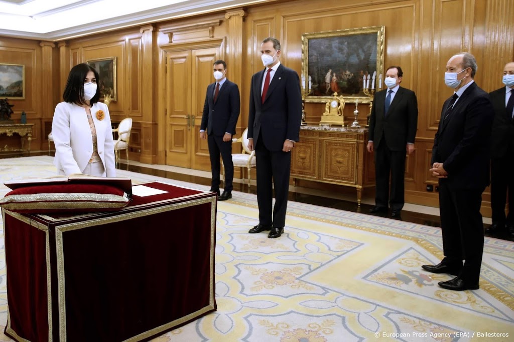 De nieuwe ministers Darias en Iceta legden in het paleis de eed af, in aanwezigheid van Felipe en van premier Sánchez. Er werd strikt afstand gehouden en alle aanwezigen droegen mondkapjes, zo toonden de beelden die het Spaanse hof na afloop verspreidde.