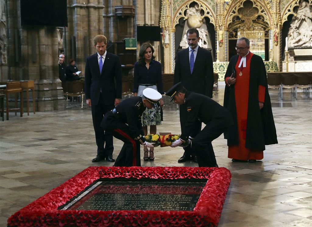 Aan het eind van het bezoek tekenden de Spaanse koning en koningin het gastenboek van Westminster Abbey. Daarin staan ook de krabbels van Felipes ouders Juan Carlos en Sofía, die in 1986 een staatsbezoek brachten aan het Verenigd Koninkrijk.