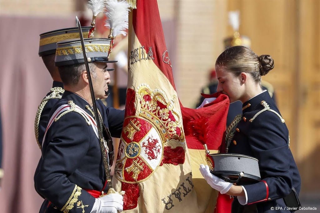 De Spaanse kroonprinses Leonor heeft in de Spaanse stad Zaragoza een militaire eed afgelegd en trouw gezworen aan de Spaanse vlag. Zij deed dat tijdens een officiële ceremonie van de Algemene Militaire Academie waaraan de prinses studeert. Haar vader koning Felipe zat als voorzitter van de ceremonie vooraan, samen met haar moeder koningin Letizia.
