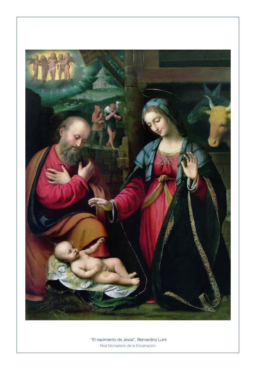 Koning Juan Carlos en koningin Sofía hebben net als vorig jaar gekozen voor een meer klassieke kerstkaart. Een afbeelding van de geboorte van Jezus, door Bernardo Luini.