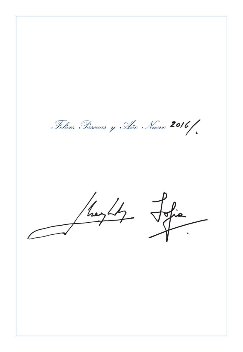 Dit jaar heeft de Spaanse koninklijke familie gekozen voor een kerstkaart met daarop een foto van prinses Leonor die haar zusje, infanta Sofía, stevig vasthoudt. De foto is genomen op het koninklijk paleis. Aan de binnenkant van de kaart staat een handgeschreven boodschap door koning Felipe: “Elke dag is er reden voor hoop en harmonie in ons hart,” schrijft hij onder meer. De kaart is ondertekend door de koning, koningin en hun beide dochters. Het is niet voor het eerst dat alleen de prinsesjes op de kerstkaart staan. Ook in 2010 en 2012 sierden de twee dochters samen de kaart.