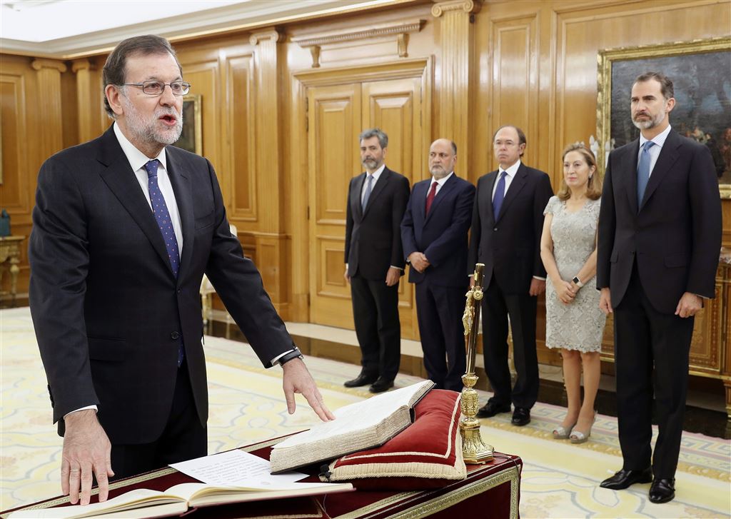 De centrumrechtse Mariano Rajoy is maandag voor de tweede keer ingezworen als premier van Spanje. De 61-jarige legde de eed af voor koning Felipe VI in het Zarzuela paleis in Madrid. Het was voor de koning voor het eerst dat hij een regeringsleider installeerde. Felipe VI volgde in 2014 zijn vader Juan Carlos I op.