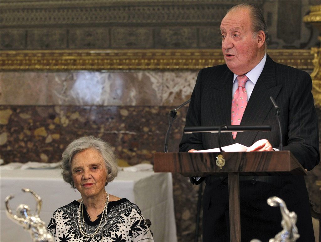 Koning Juan Carlos prees in zijn toespraak de literatuur van Poniatowska en haar sociale en menselijke betrokkenheid. Leunend op zijn stok begroette hij volgens het Spaanse persbureau EFE ieder van de 120 gasten die de lunchbijeenkomst bijwoonden. De koning liet de lunch met de winnaar van de Cervantesprijs voorgaande jaren schieten vanwege gezondheidsredenen.