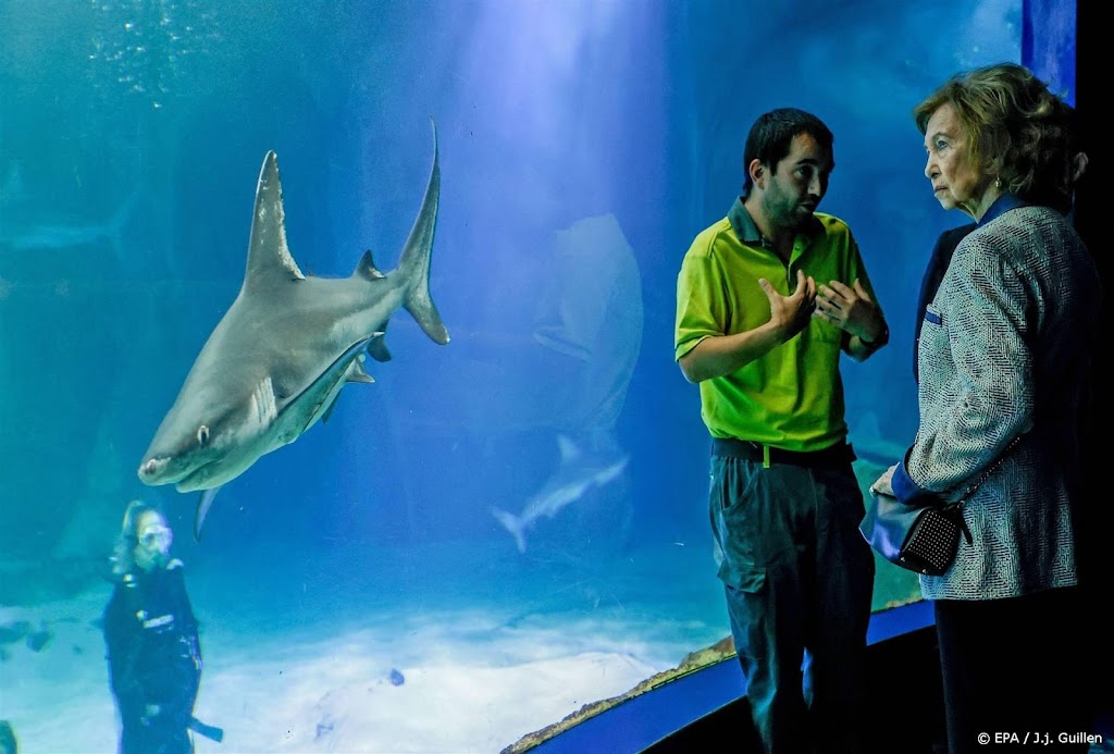 Op beelden is te zien dat de moeder van de huidige koning Felipe langs verschillende dierenverblijven liep. Ook woonde ze een zeeleeuwenshow bij.