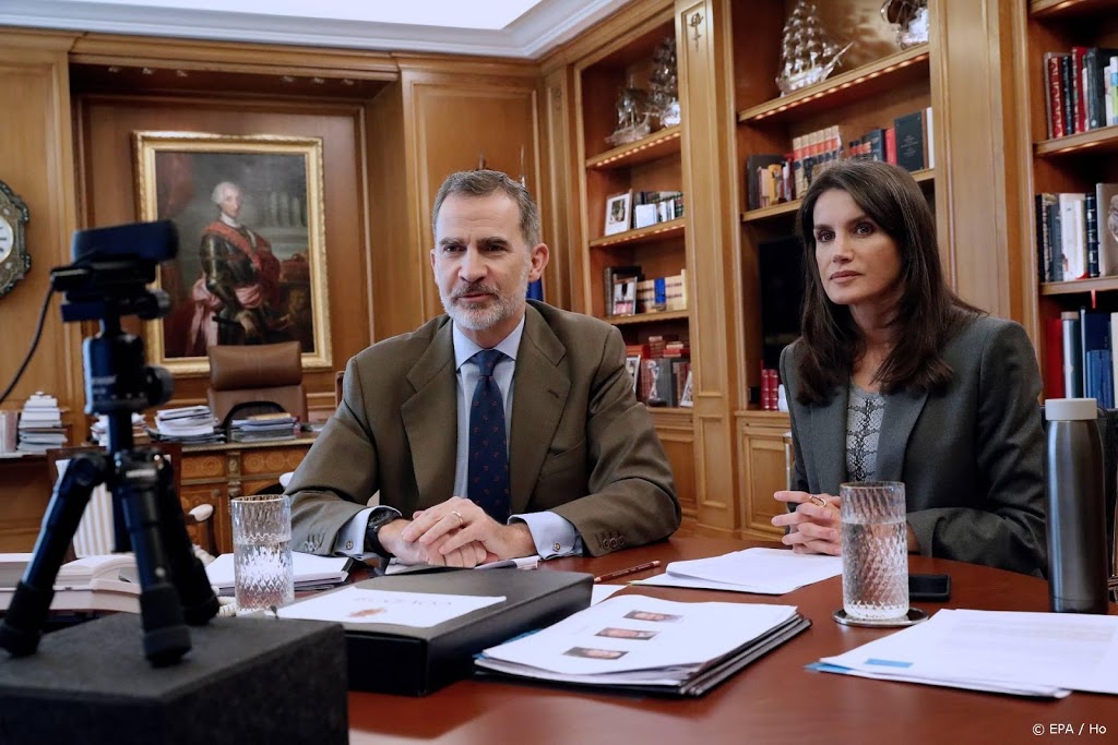 Het Spaanse koningspaar laat zich ook tijdens de paasdagen continu bijpraten over de laatste ontwikkelingen van de coronacrisis in Spanje. Dat gebeurde, zoals de afgelopen weken haast normaal is geworden, wederom met videogesprekken vanuit het Zarzuela Paleis in Madrid.
