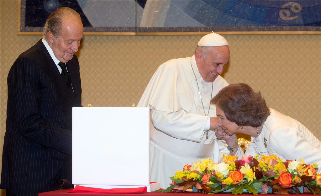 ROME – Koning Juan Carlos en koningin Sofia van Spanje gingen maandag op audiëntie bij paus Franciscus in het Vaticaan. Koningin Sofia was daarbij in het wit gekleed. Dat recht heeft ze, want het privilège du blanc schrijft voor dat het dragen van witte kleding tijdens een pontificale audiëntie is voorbehouden aan katholieke koninginnen.
