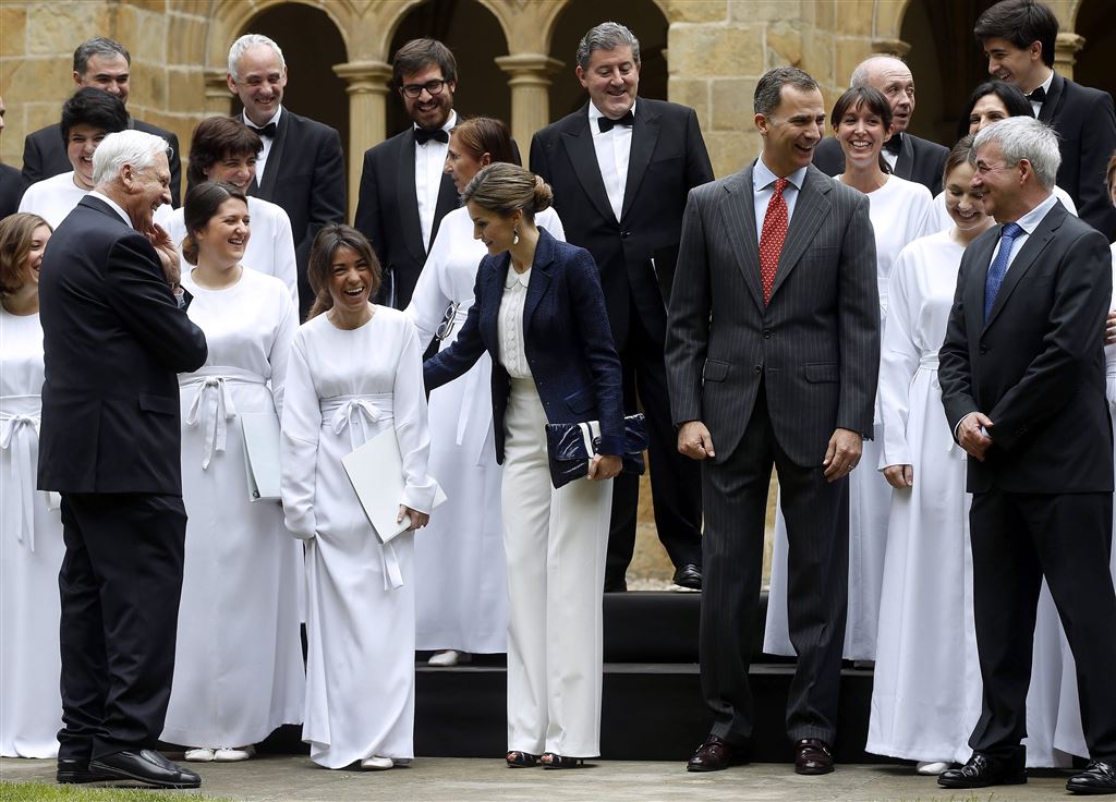 Felipe en Letizia bekeken samen met lokale autoriteiten hoe kunstenaars door de eeuwen heen met oorlog en vrede zijn omgegaan in hun werken. Na afloop werd het koningspaar toegezongen door het Orfeon Donostiarra-koor. De mannen en vrouwen van het koor brachten onder meer het nummer Imagine van John Lennon ten gehore.