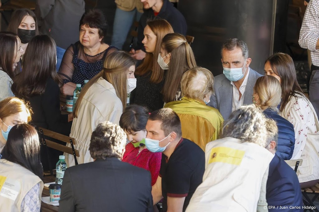 De Spaanse koninklijke familie heeft zaterdag een kijkje genomen bij het centrum voor Oekraïense vluchtelingen in Pozuelo de Alarcón (CREADE). Naast koning Felipe en zijn vrouw koningin Letizia waren ook hun dochters prinses Leonor en prinses Sofia meegekomen naar de opvanglocatie in Madrid.